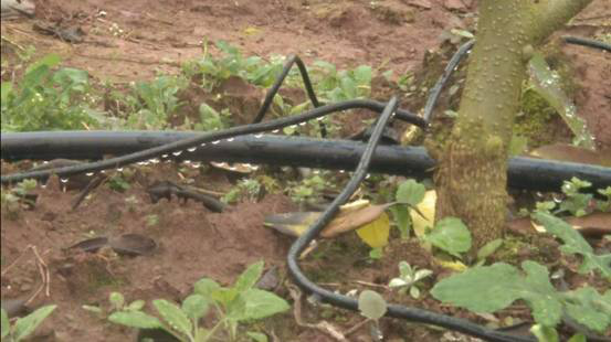 在东山镇孔雀马鞍山村四川蜀椒藤椒基地,一株株藤椒树长势良好。该种植基地采用滴灌技术,每一株树苗下面都有一根黑色的水管,定向喷洒,节水率能达到百分之四十以上,有效提高了水资源的使用率。