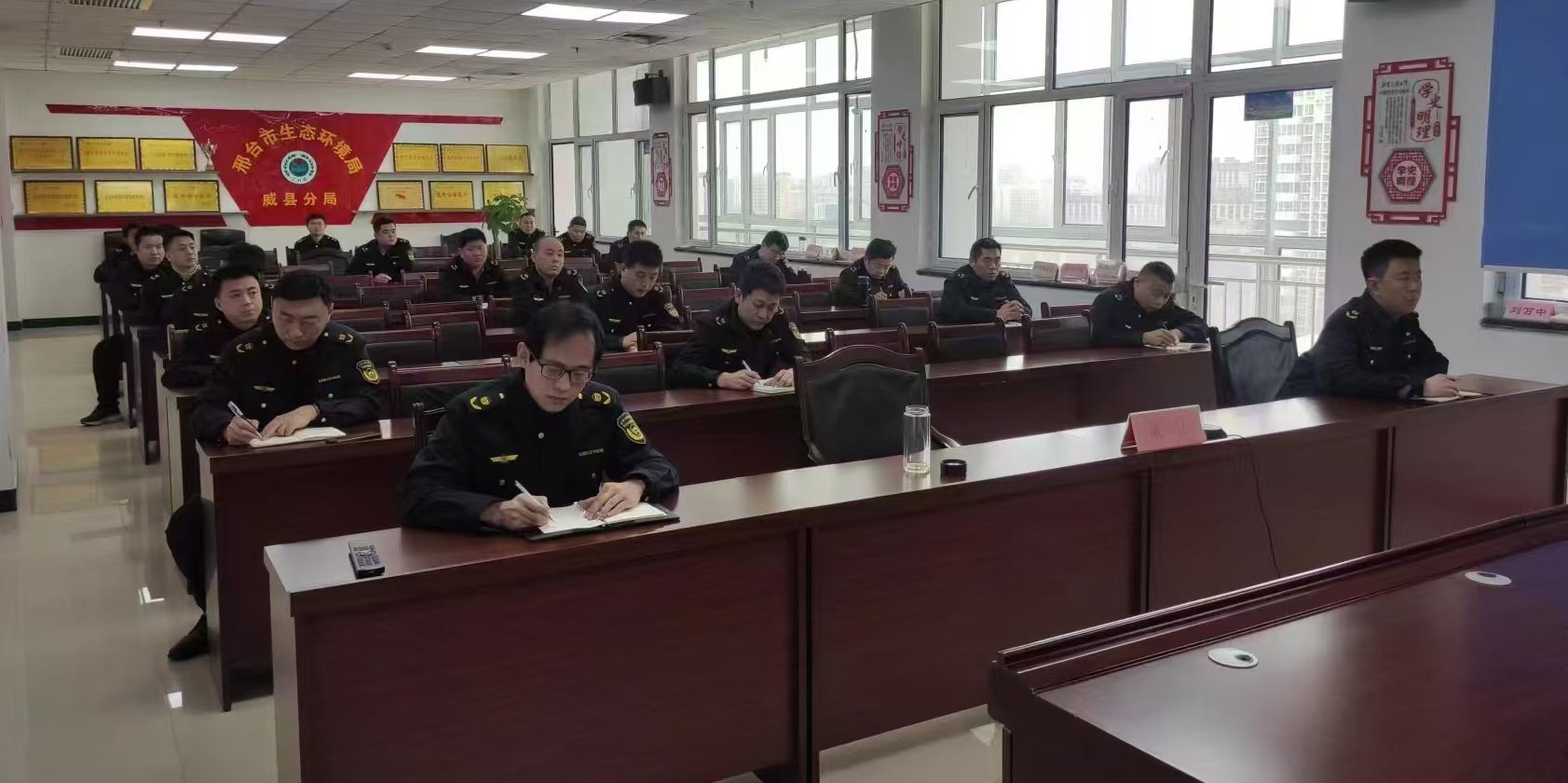 为进一步加强生态环境保护综合行政执法能力,抓紧适应新形势、新常态,加快建设一支忠诚、干净、担当的高素质执法铁军,邢台市生态环境局威县分局从4个方面加强队伍建设,助力深入推进污染防治攻坚战。