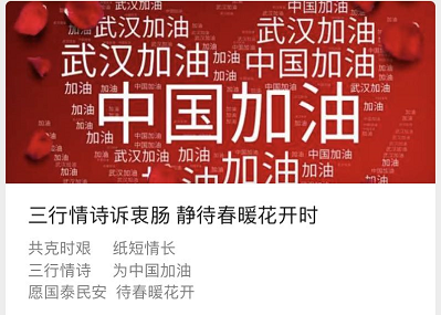 同时,公司公众号多次发布抗击疫情的相关文章,向身处前线的抗疫英雄和同胞们表白和致敬。